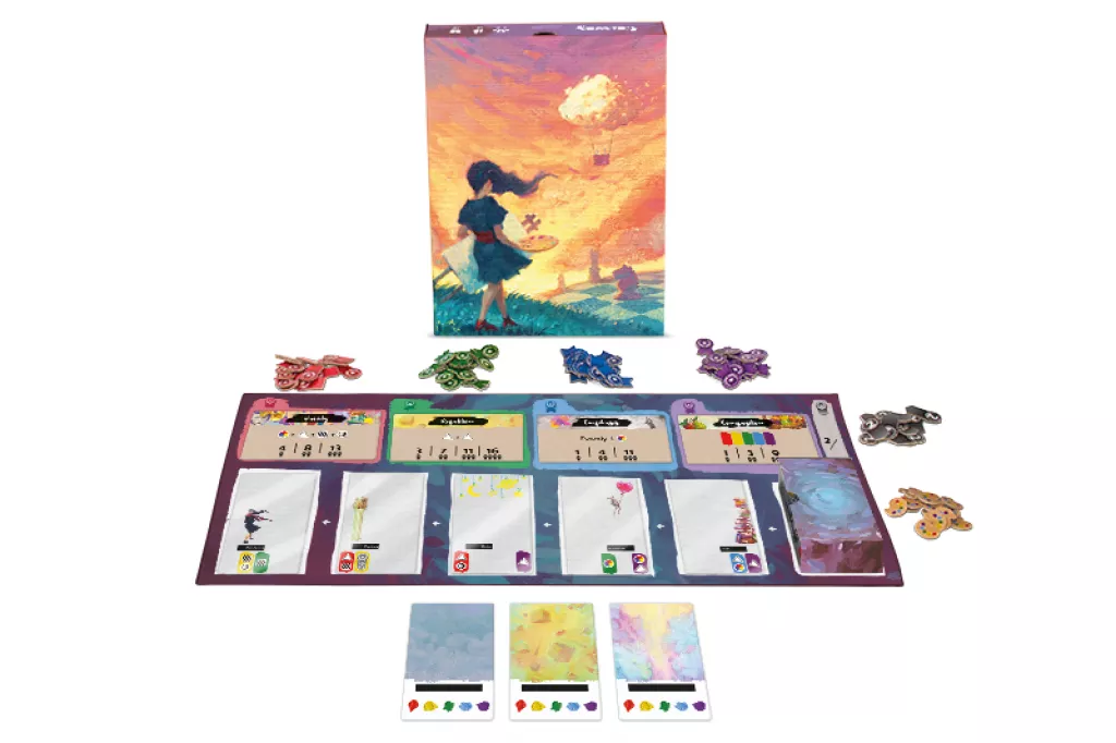 Οι παίκτες συλλέγουν art cards και τις τοποθετούν σε layers, χτίζοντας πίνακες που ενεργοποιούν διαφορετικά scoring conditions. Κάθε συνδυασμός δημιουργεί ένα οπτικά μοναδικό αποτέλεσμα.