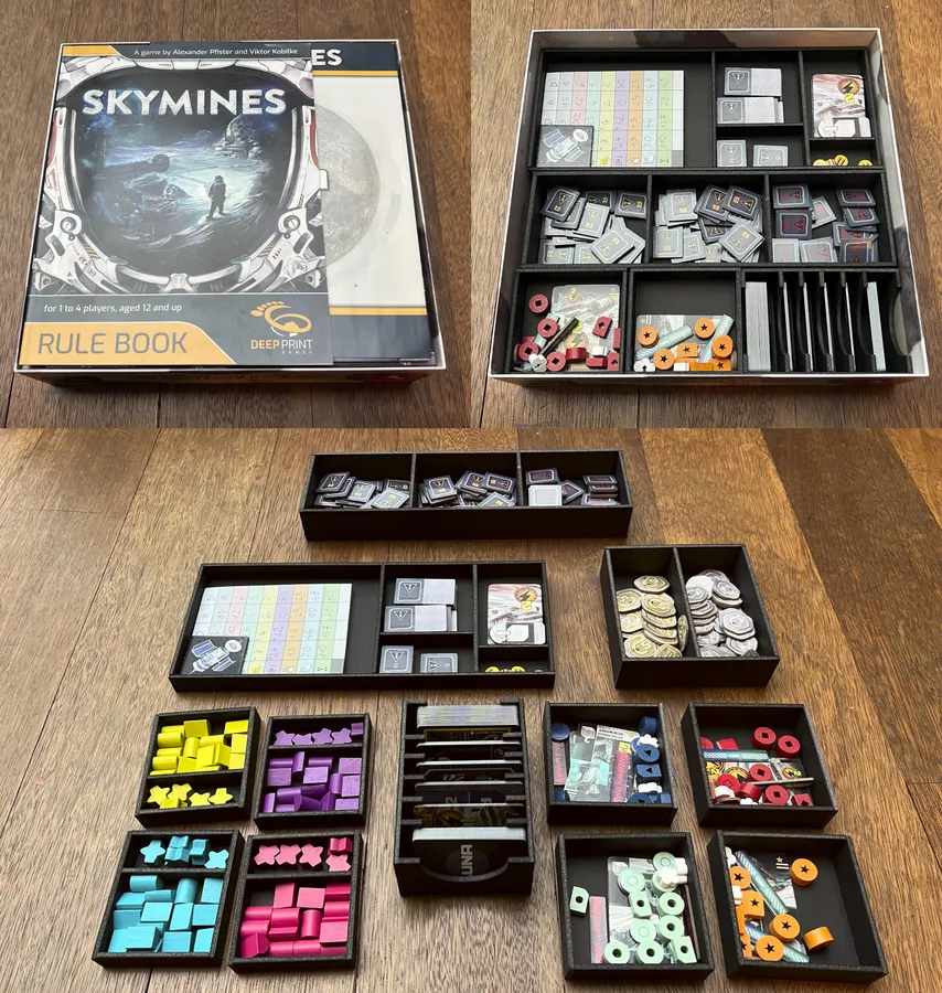 Στο Skymines ανταγωνίζεστε ως επενδυτές που διαχειρίζονται διαστημικές εταιρείες εξόρυξης στη Σελήνη και τη Ζώνη των Αστεροειδών. Προγραμμάτισε έξυπνα τις κάρτες σου, εξασφάλισε μετοχές και κυριαρχία στο ταμπλό και γίνε ο απόλυτος κυρίαρχος των ουράνιων ορυχείων!